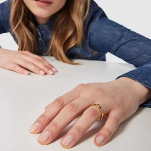 Pierścionek Tous Ring Mix wykonany z żółtego srebra Vermeil z szafirem o średnicy 2 mm. Technika produkcji: Odlewanie. Srebro Vermeil – wysokogatunkowe srebro o najwyższej próbie 925 pokryte w całości warstwą 18-karatowego złota.